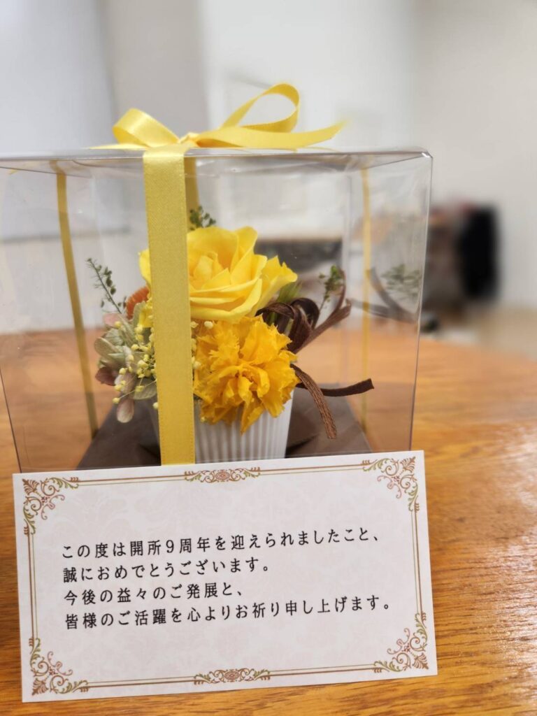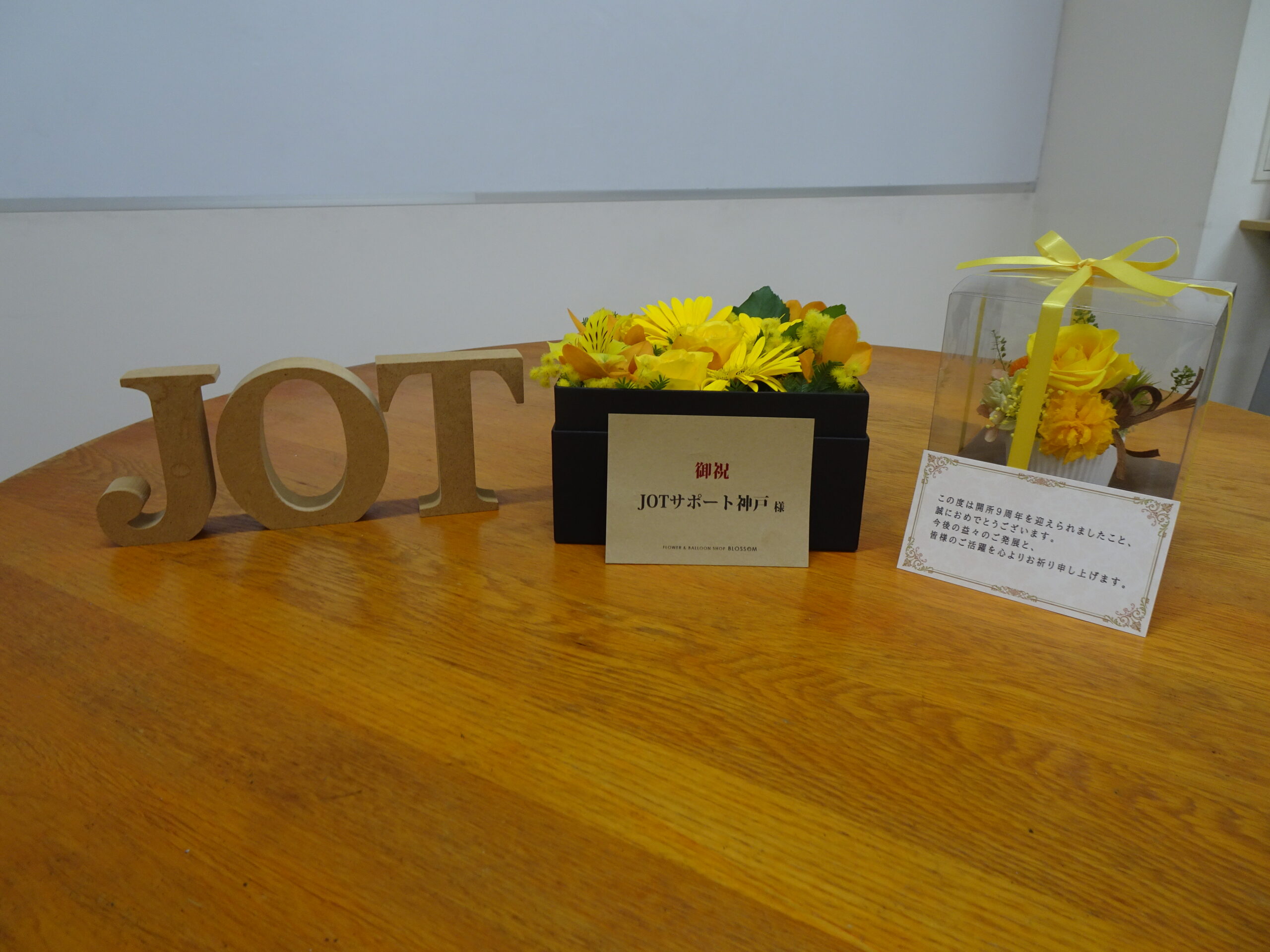 大変喜ばしいことに、JOT開所9周年を祝って卒業生の方々がお花を贈ってくださいました。